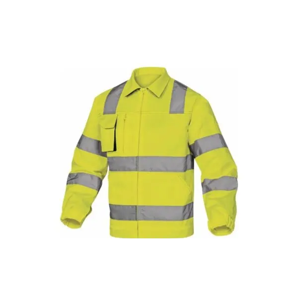 La Chaqueta M2VHV de Delta Plus es una chaqueta de trabajo de alta visibilidad, clase 2, fabricada en 54% algodón y 46% poliéster. Cuenta con cremalleras cubiertas, puños elásticos ajustables mediante velcro, y 4 bolsillos (incluyendo 1 con cremallera y 1 interior). Tiene bandas retroreflectantes cosidas.