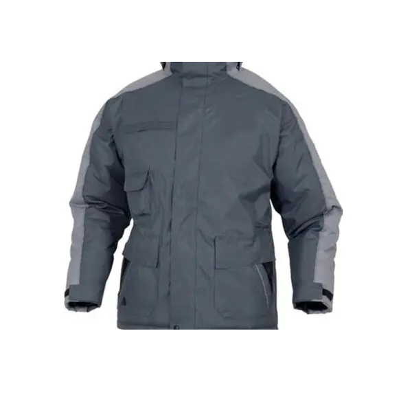 La Chaqueta NORDLAND de Delta Plus es una parka para frío extremo, fabricada en poliéster Oxford impregnado de poliuretano. Cuenta con costuras termoselladas, capucha desmontable, cuello forrado en lana polar, cierre por cremallera doble cursor bajo solapa con velcro y corchetes, y 7 bolsillos. Ofrece una verdadera muralla contra el frío extremo y es cortaviento.