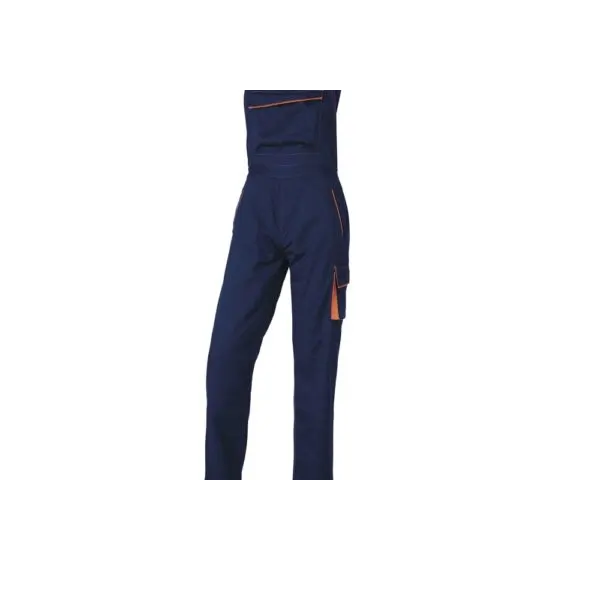 Mono de trabajo Delta Plus con tirantes ajustables, fabricado en tejido duradero de algodón y poliéster. Diseñado para proteger al usuario en labores industriales o de mantenimiento, con múltiples bolsillos y costuras reforzadas para mayor resistencia mecánica.