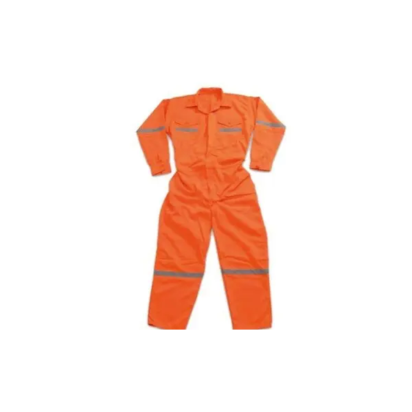 Overol de trabajo en tela drill color naranja con diseño clásico de una pieza, ideal para protección corporal básica en trabajos industriales. Cuenta con múltiples bolsillos para almacenamiento, costuras reforzadas y cierre frontal para fácil colocación. El color naranja brinda visibilidad adicional durante las labores. (