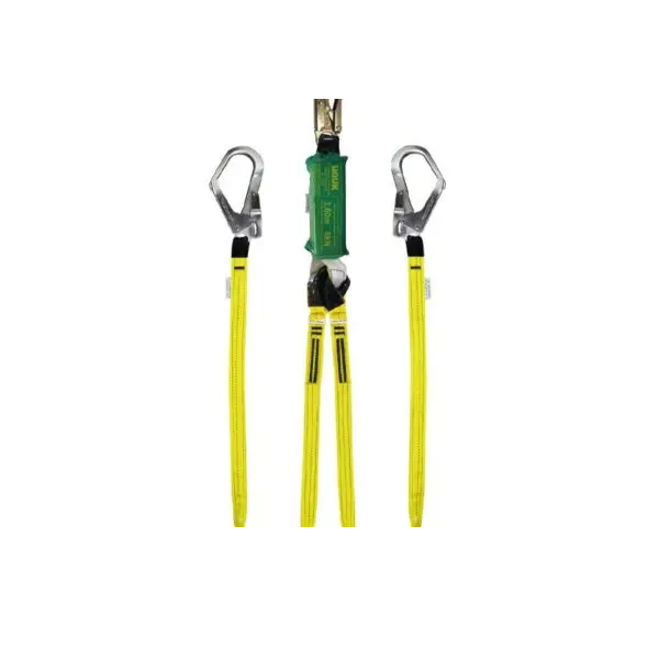 descripcion: Variante de la línea con amortiguador de caída que ofrece un gancho chico y dos ganchos grandes, proporcionando puntos de conexión adicionales y mayor flexibilidad en sistemas de protección contra caídas.