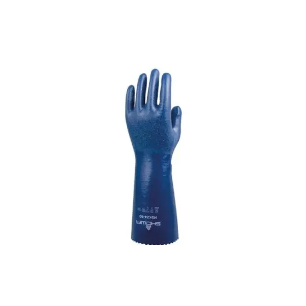Guante para Líquidos y Químicos Showa NSK24, diseñado para brindar protección química y mecánica potable con comodidad, ideal para manejo de soluciones industriales o limpieza con químicos.