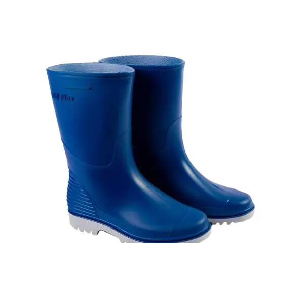 descripcion: Bota de trabajo en PVC color azul con suela antideslizante que proporciona tracción segura y estabilidad. Impermeable y flexible, ofrece confort y facilidad de movimiento durante largas jornadas laborales.