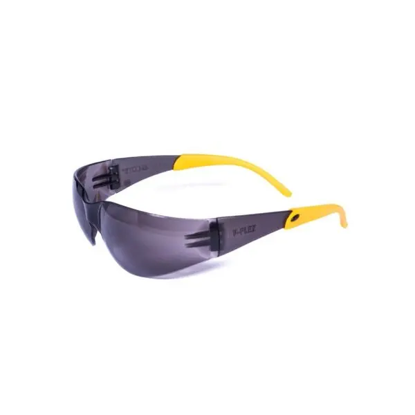 Descripción: Anteojos de seguridad con montura flexible y lentes amarillos oscuros de policarbonato. Ofrecen protección UV y resistencia a impactos, ideales para uso en exteriores y condiciones de luz intensa.